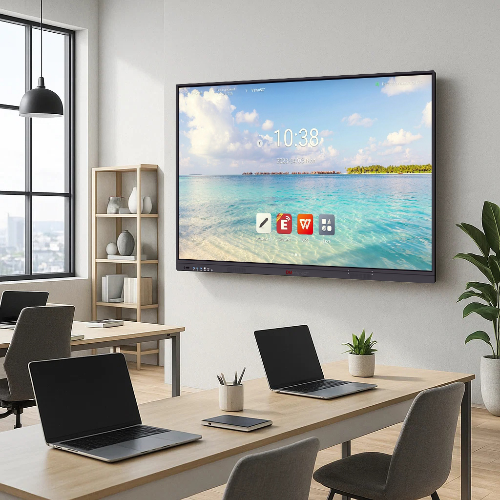 In summary, the DMInteract C Series 4K Interactive Flat Panel with a 48MP built-in camera, 8-array microphone, Android 14, and optional Windows 11 OPS module is a versatile all-in-one solution for today’s collaborative environments. With its ultra-responsive multi-touch 4K display, advanced audio-visual features, robust security, and flexible connectivity, it is designed to elevate meetings, classrooms, and interactive presentations with power, style, and reliability.