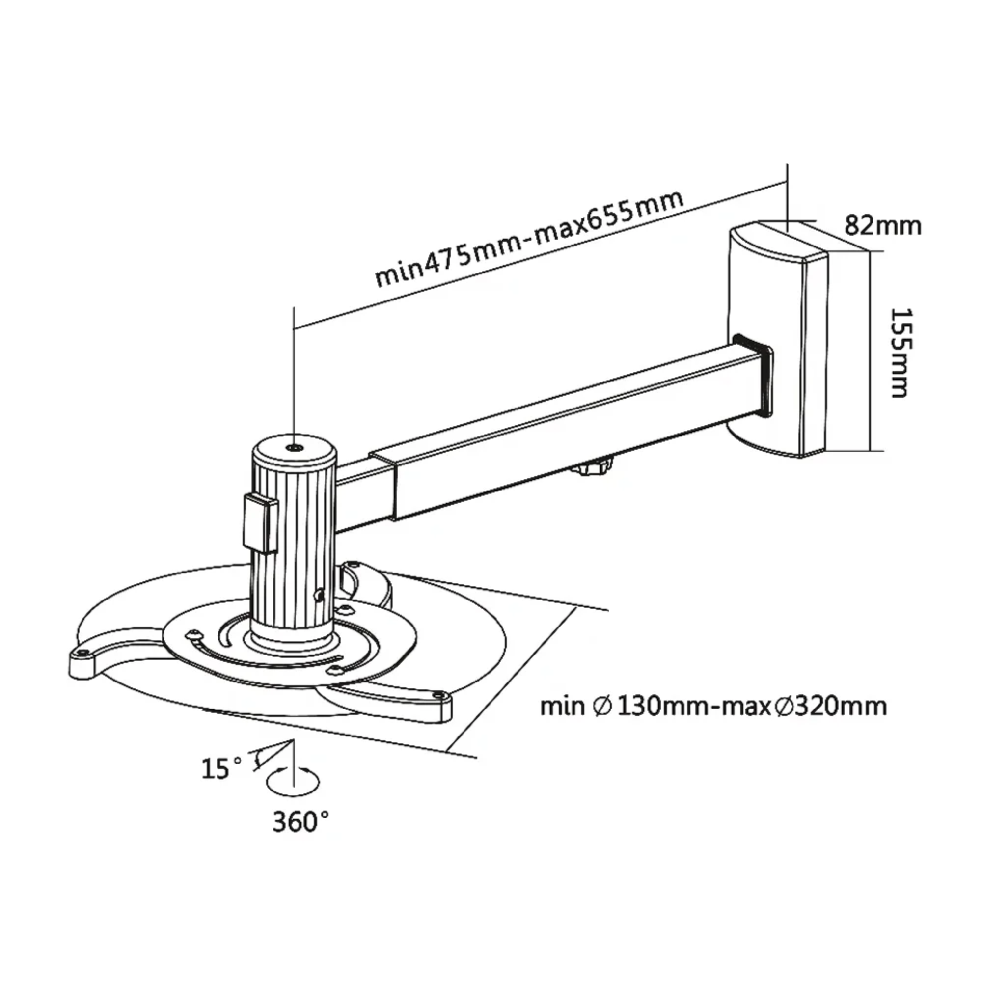 For enhanced flexibility, the mount offers ±15° tilt adjustment and 360° rotation, enabling fine-tuning of the projection angle after installation. Its robust design and versatile alignment options make it a reliable solution for both home and professional setups.